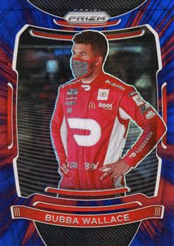 The Bubba Wallace 2021 Prizm NASCAR #52 Hyper Red & Blue card is 1 of 90 Bubba Wallace's card variations in the 2021 Prizm NASCAR set being tracked by Sports Card Investor, including #52 Base, #64 Base, #52 Blue, #64 Blue, and #64 Hyper Blue & Carolina Blue.