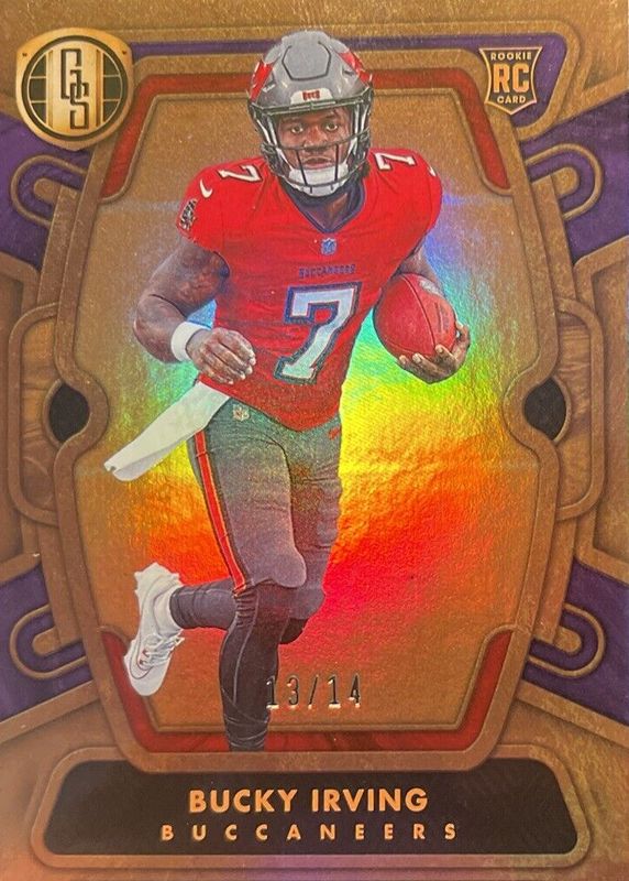 This card is 1 of 20 Bucky Irving's card variations in the 2024 Gold Standard set being tracked by Sports Card Investor, including Base /99, Platinum /75, White Gold /65, Citrine /40, and Rose Gold /40.