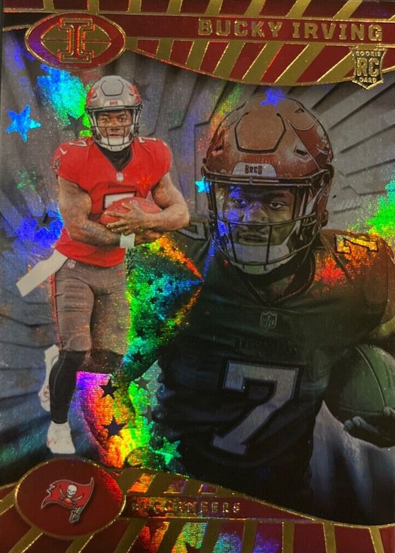 This card is 1 of 25 Bucky Irving's card variations in the 2024 Illusions set being tracked by Sports Card Investor, including Base, Retail, Trophy Collection Dots, Trophy Collection Emerald, and Trophy Collection Orange.