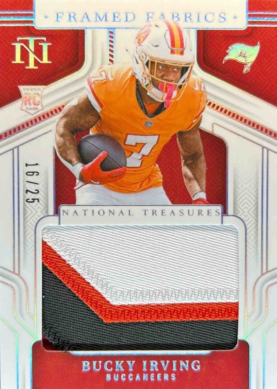 2024 National Treasures Bucky Irving Framed Fabric Patch Holo Silver RC #24/25