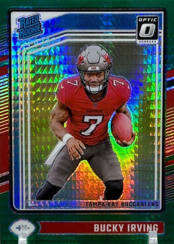 The Bucky Irving 2024 Optic #216 Green Hyper Rookie card in Raw condition has moved up $1.66 (+124%) in the last 30 days and was last sold for $3.00 .