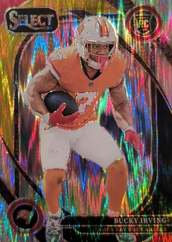 This card is 1 of 164 Bucky Irving's card variations in the 2024 Select set being tracked by Sports Card Investor, including Club Level, Concourse, Field Level, Suite Level, and Club Level Black & Blue Shock.