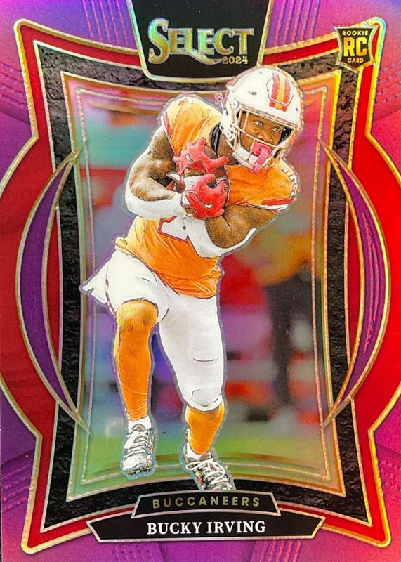 This card is 1 of 164 Bucky Irving's card variations in the 2024 Select set being tracked by Sports Card Investor, including Club Level, Concourse, Field Level, Suite Level, and Club Level Black & Blue Shock.