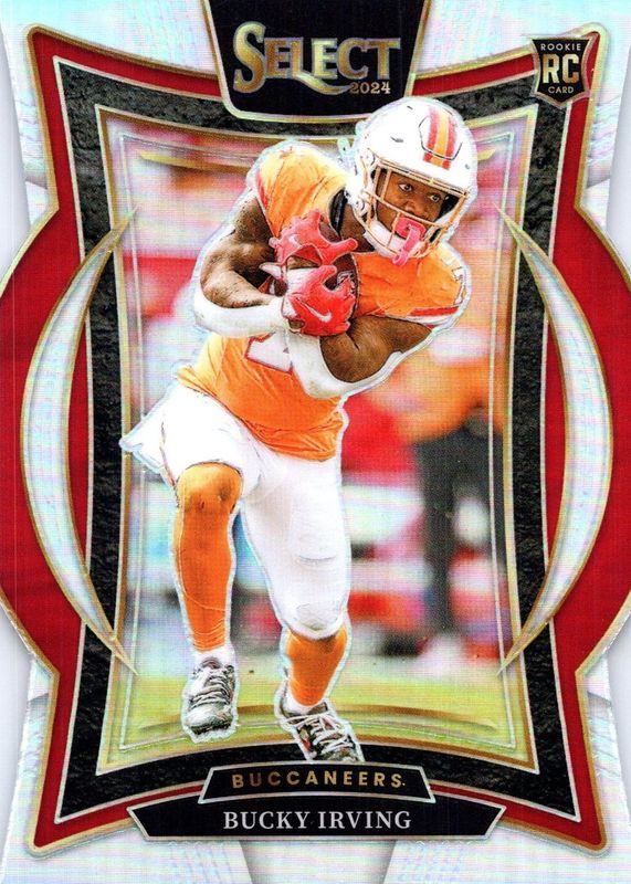 This card is 1 of 164 Bucky Irving's card variations in the 2024 Select set being tracked by Sports Card Investor, including Club Level, Concourse, Field Level, Suite Level, and Club Level Black & Blue Shock.