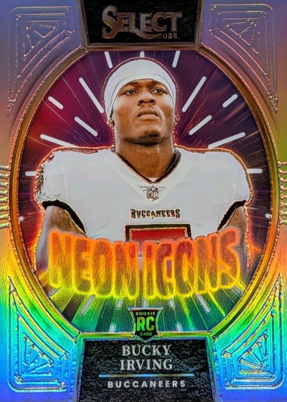2024 Panini Select Bucky Irving Silver Prizm Neon Icons #12 Tampa Bay Bucs RC 🍀