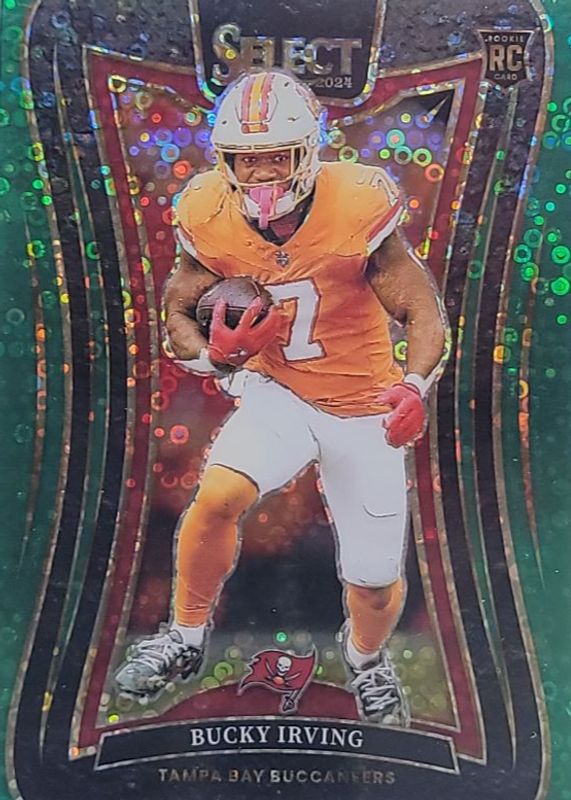 This card is 1 of 164 Bucky Irving's card variations in the 2024 Select set being tracked by Sports Card Investor, including Club Level, Concourse, Field Level, Suite Level, and Club Level Black & Blue Shock.