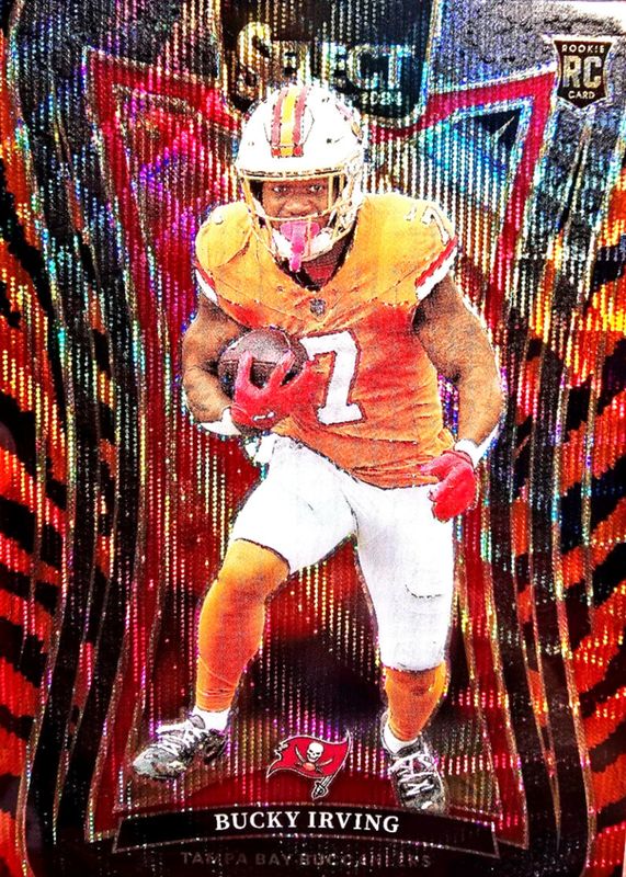 This card is 1 of 164 Bucky Irving's card variations in the 2024 Select set being tracked by Sports Card Investor, including Club Level, Concourse, Field Level, Suite Level, and Club Level Black & Blue Shock.