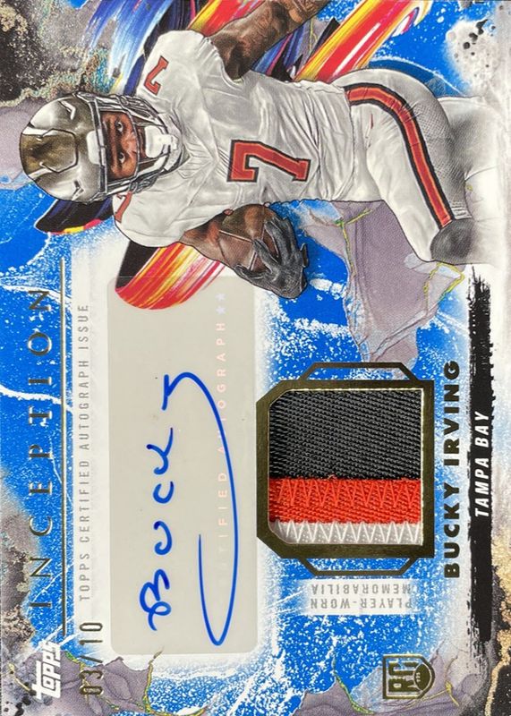 Bucky Irving 2024 Topps Inception #PPA-BI Provenance Patch Autographs - Blue /10 Rookie RAW Price Guide
