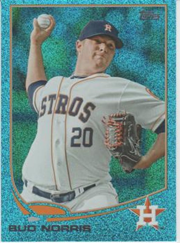 The Bud Norris 2013 Topps #353 Silver Slate Blue Sparkle card is 1 of 18 Bud Norris' card variations in the 2013 Topps set being tracked by Sports Card Investor, including Base, Blue, Emerald Foil, Purple, and Red.