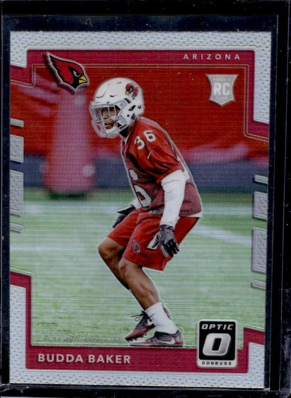 The Budda Baker 2017 Optic #149 Holo Rookie card is 1 of 26 Budda Baker's card variations in the 2017 Optic set being tracked by Sports Card Investor, including Base, Bronze, Lime, Pink, and Red & Yellow.