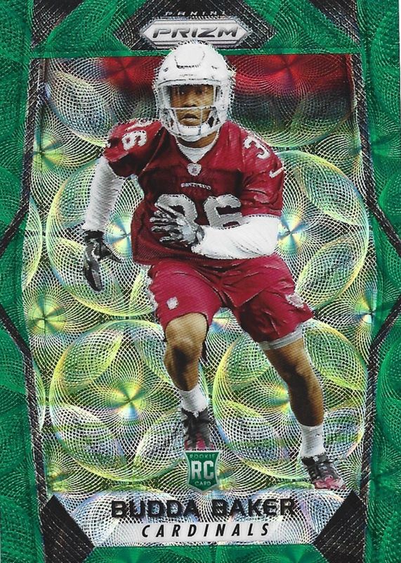 This card is 1 of 19 Budda Baker's card variations in the 2017 Prizm set being tracked by Sports Card Investor, including Disco, Green, Pink, Red White Blue, and Silver.