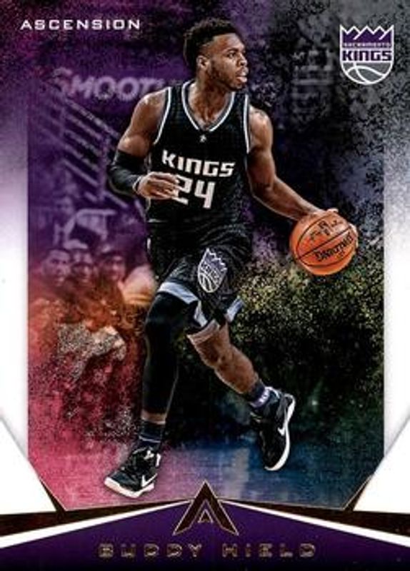 The Buddy Hield 2017 Ascension #4 Base card is 1 of 8 Buddy Hield's card variations in the 2017 Ascension set being tracked by Sports Card Investor, including Blue /125, Red /75, Green /25, Black /1, and Autographs /144.