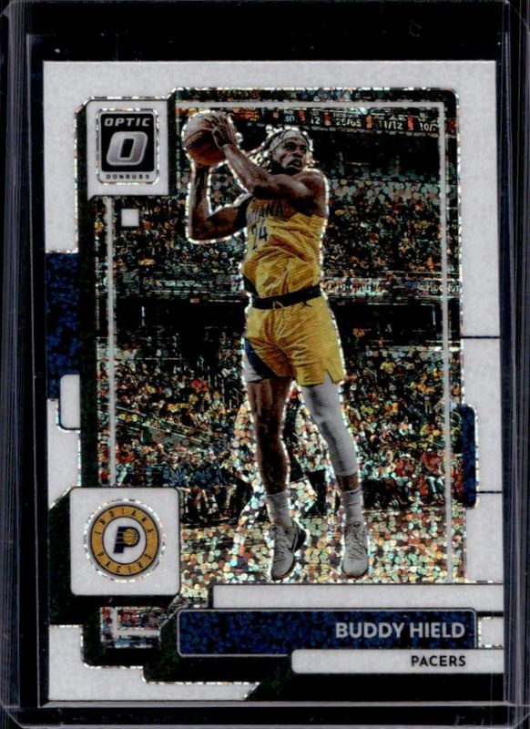 The Buddy Hield 2022 Optic #95 White Sparkle /(SSP) card is 1 of 58 Buddy Hield's card variations in the 2022 Optic set being tracked by Sports Card Investor, including Base, Checkerboard, Choice Red & Green, Fast Break, and Green Shock.