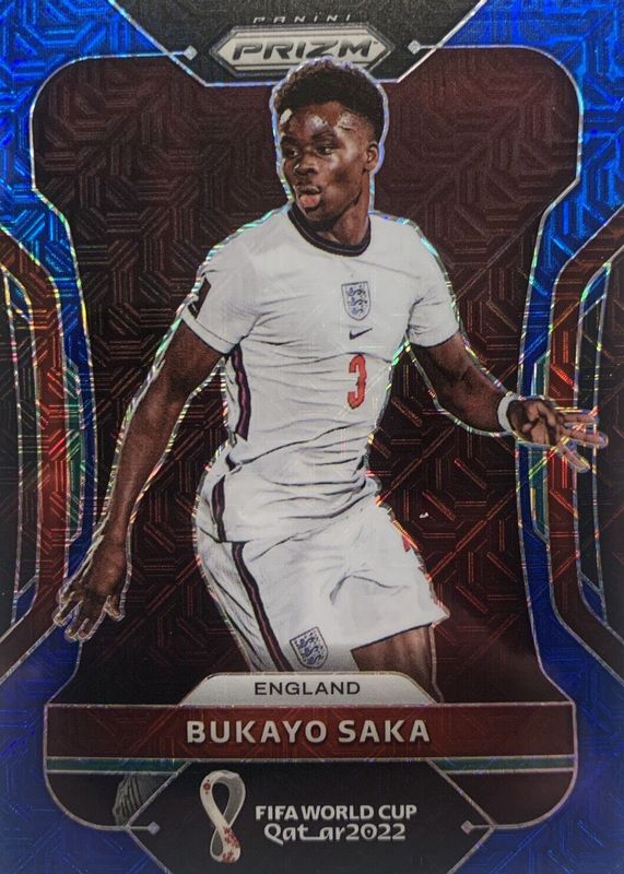 2022 PANINI PRIZM WORLD CUP QATAR SOCCER ENGLAND BUKAYO SAKA BLUE MOJO /75
