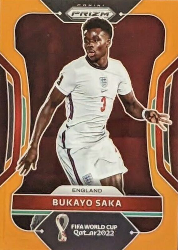 2022 BUKAYO SAKA PANINI PRIZM FIFA WORLD CUP ORANGE PRIZM /25 ENGLAND