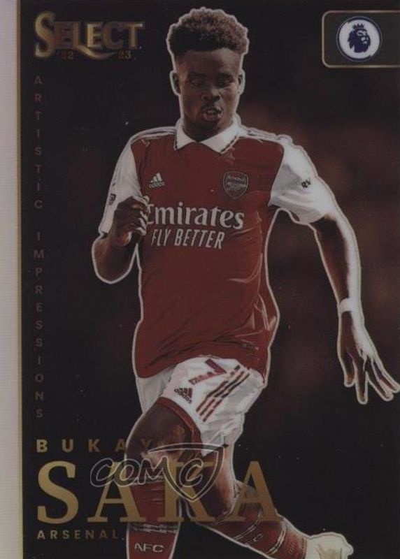The Bukayo Saka 2022 Select Premier League #18 Artistic Impressions /(SSP) card in Raw condition has not changed in price in the last 30 days and was last sold for $18.08 .