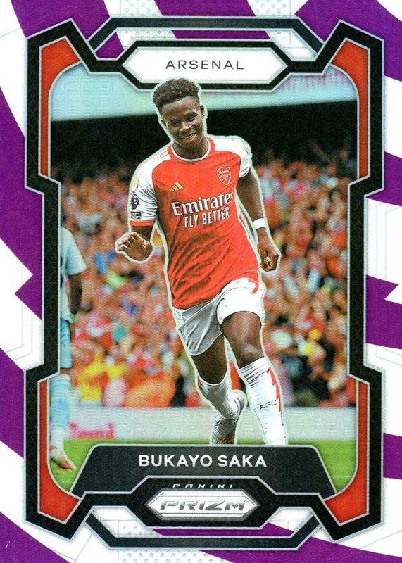 2023-24 BUKAYO SAKA PRIZM PREMIER LEAGUE PURPLE WHITE STRIPE PRIZM 38/92