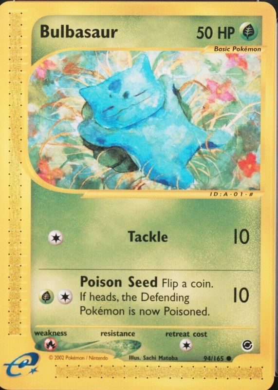 The Bulbasaur 2002 Expedition #094/165 Base card in Raw TCG (Near Mint) condition has moved up $0.05 (+0.3%) in the last 30 days and was last sold for $20.04 .