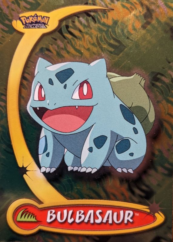 The Bulbasaur 2004 Topps Advanced Challenge #11 Foil card in Raw TCG (Lightly Played) condition has not changed in price in the last 30 days and was last sold for $35.00 .