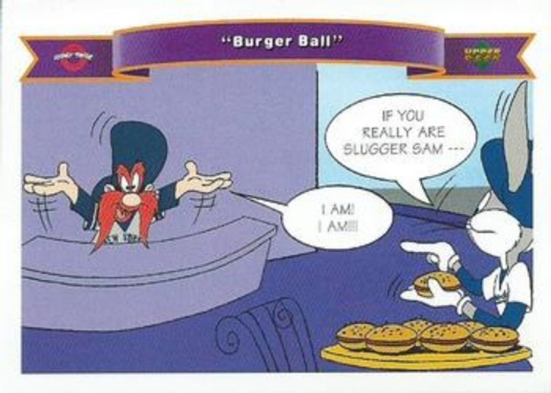 The Burger Ball 1991 Upper Deck Comic Ball 2 #111 Base card is 1 of 18 Burger Ball's card variations in the 1991 Upper Deck Comic Ball 2 set being tracked by Sports Card Investor, including #100 Base, #101 Base, #102 Base, #103 Base, and #104 Base.