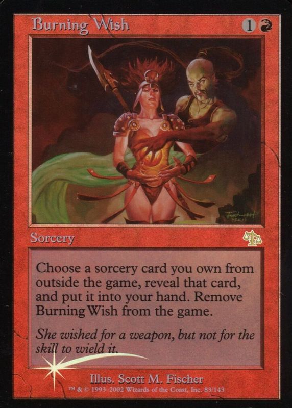 The Burning Wish 2002 Judgment #83 Foil card in Raw TCG (Lightly Played) condition has not changed in price in the last 30 days and was last sold for $59.99 .