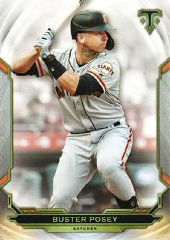 The Buster Posey 2019 Topps Triple Threads #64 Base card is 1 of 70 Buster Posey's card variations in the 2019 Topps Triple Threads set being tracked by Sports Card Investor, including Amethyst /299, Emerald /259, Amber /199, Gold /99, and Citrine /75.