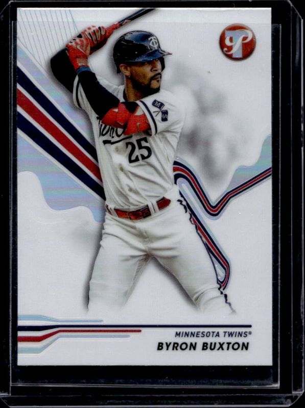 The Byron Buxton 2024 Topps Pristine #152 Refractor card is 1 of 24 Byron Buxton's card variations in the 2024 Topps Pristine set being tracked by Sports Card Investor, including Base, Pristine Refractor, Green Refractor /150, Pristine Purple Refractor /99, and Purple Refractor /99.