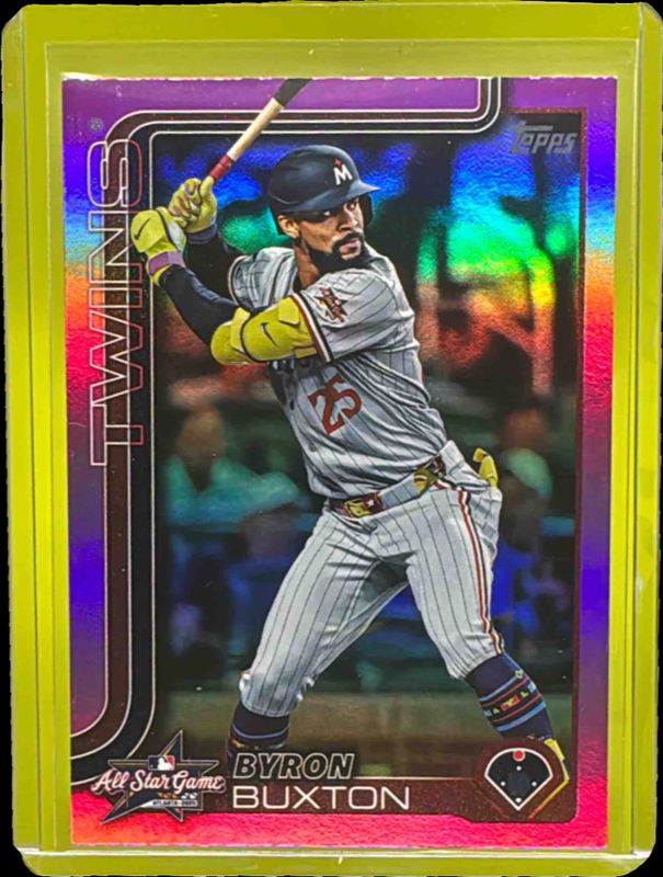 The Byron Buxton 2025 Topps Update #ASG-24 All-Star Game - Pink Foil card is 1 of 61 Byron Buxton's card variations in the 2025 Topps Update set being tracked by Sports Card Investor, including 1990 Topps, 1990 Topps Autographs, 1990 Topps - Holo Foil, 1990 Topps - Pink Foil, and 1990 Topps Relic.