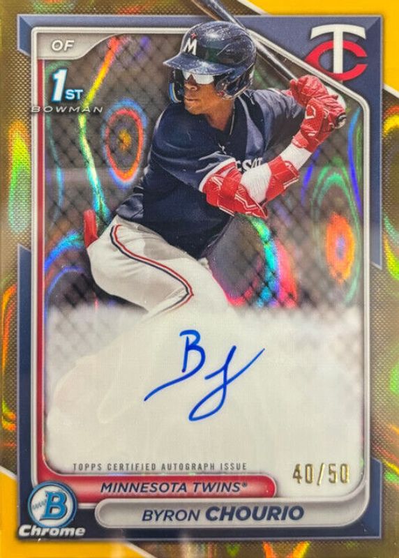 Best Prices Available For Sale of Byron Chourio 2024 Bowman #CPA-BCH Chrome Prospect Auto - Gold Lava Refractor /50 (1st)