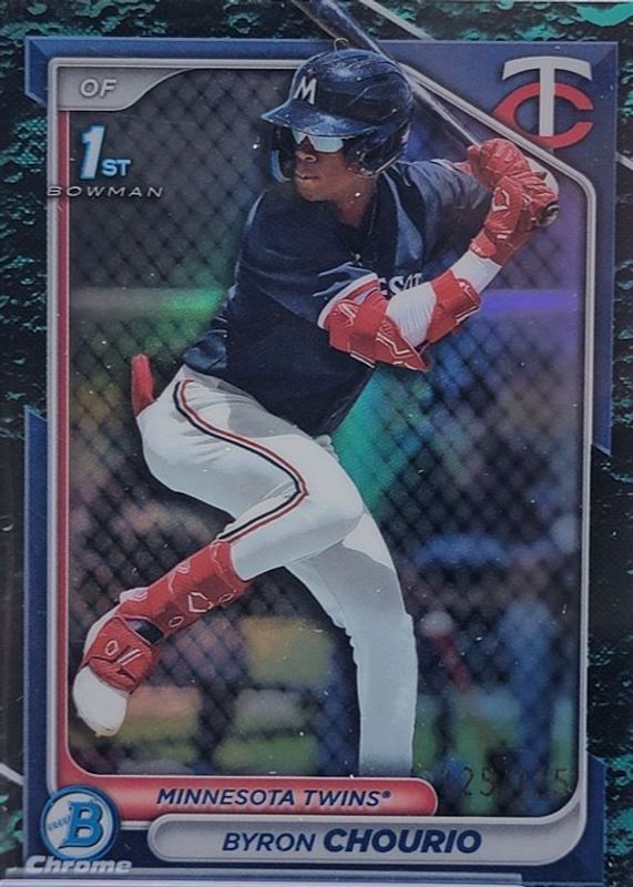 This card is 1 of 55 Byron Chourio's card variations in the 2024 Bowman set being tracked by Sports Card Investor, including Chrome Prospects (1st), Chrome Prospects - Lunar Glow Refractor (1st), Chrome Prospects - Mini-Diamond Refractor (1st), Chrome Prospects - Pearl Refractor (1st), and Chrome Prospects - Refractor /499 (1st).