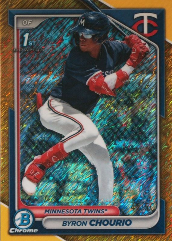 Best Prices Available For Sale of Byron Chourio 2024 Bowman #BCP-129 Chrome Prospects - Gold Shimmer Refractor /50 (1st)