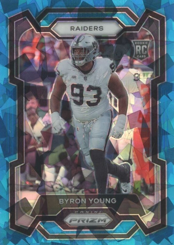 2023 Panini Prizm Byron Young /99 Rookie Blue Cracked Ice Prizm RC #355 Raiders