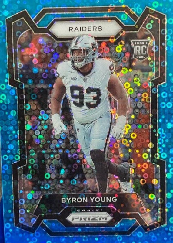 2023 Panini Prizm Byron Young RC #355 No Huddle BLUE DISCO S# 68/95 Raiders BAMA