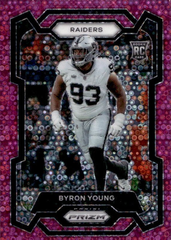 The Byron Young 2023 Prizm #355 No Huddle Pink /15 Rookie card in Raw condition has not changed in price in the last 30 days and was last sold for $3.75 .
