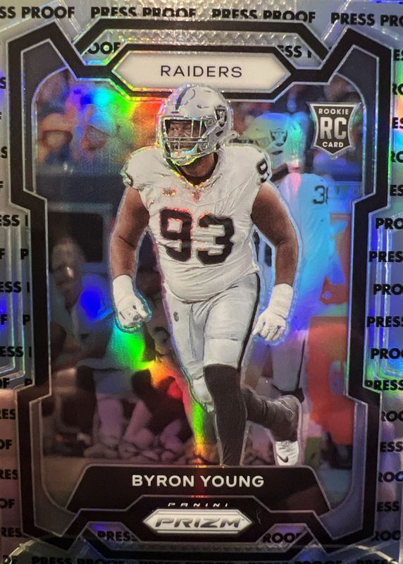 The Byron Young 2023 Prizm #355 Press Proof /(SSP) Rookie card in Raw condition has not changed in price in the last 30 days and was last sold for $7.00 .