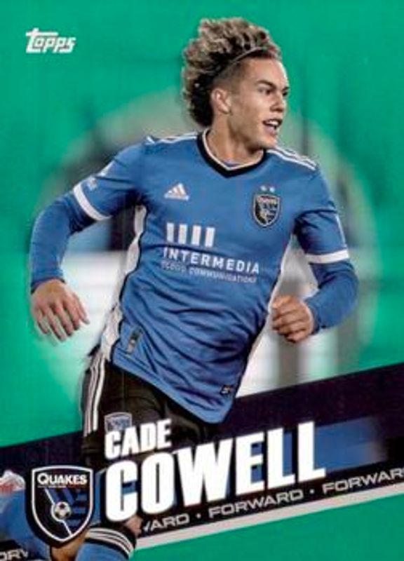 The Cade Cowell 2022 Topps MLS #90 Green /75 card is 1 of 21 Cade Cowell's card variations in the 2022 Topps MLS set being tracked by Sports Card Investor, including #90b Base, #90 Base, #129 Icy White Foil, #129 Blue /99, and #90 Blue /99.