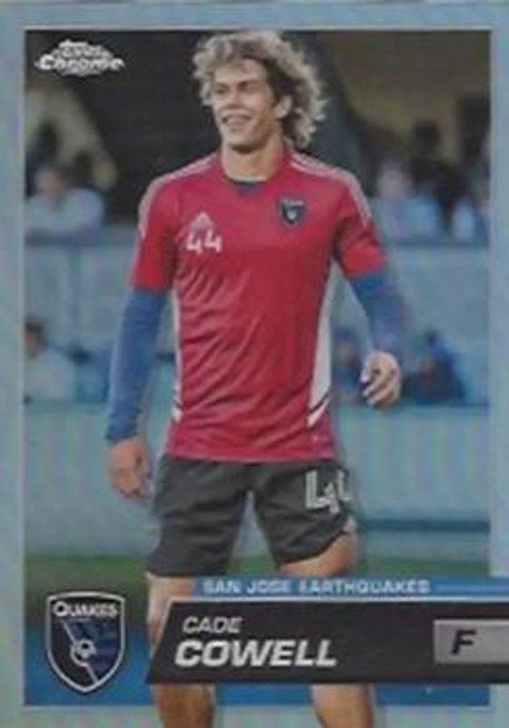 The Cade Cowell 2023 Topps Chrome MLS #131b Base card is 1 of 44 Cade Cowell's card variations in the 2023 Topps Chrome MLS set being tracked by Sports Card Investor, including Base, Pink X-Fractor, Refractor, Speckle Refractor, and Blue Mini-Diamond Refractor /199.