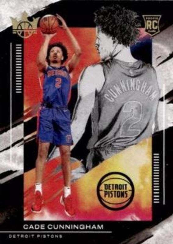 The Cade Cunningham 2021 Court Kings #143 Base Rookie card is 1 of 55 Cade Cunningham's card variations in the 2021 Court Kings set being tracked by Sports Card Investor, including #176 Base, #77 Base, #110 Base, #77 Rookies I, and #110 Rookies II.