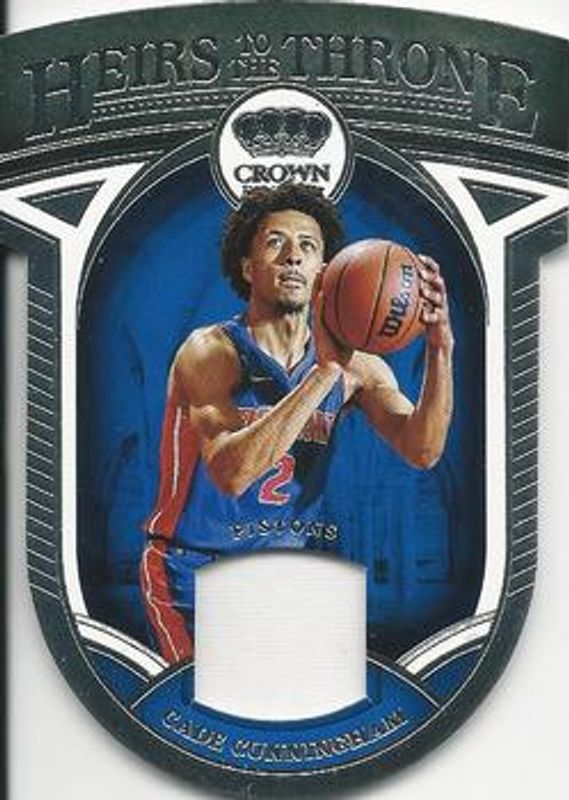 The Cade Cunningham 2021 Crown Royale #HT-CCN Heirs to the Throne Rookie card is 1 of 47 Cade Cunningham's card variations in the 2021 Crown Royale set being tracked by Sports Card Investor, including #133 Base, #69 Base, #69 Asia Exclusive Red, #69 Crystal, and #69 Blue Crystal /99.