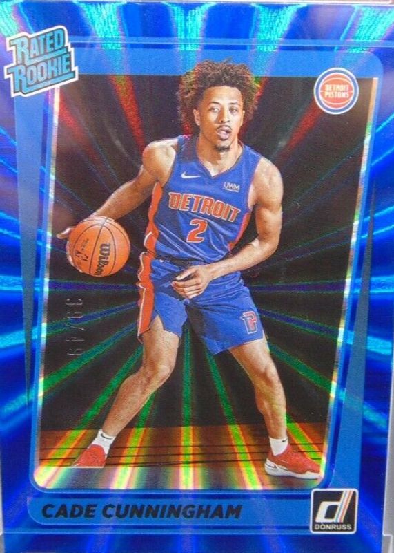 2021-22 Donruss Basketball Cade Cunningham Rated Rookie Blue Laser /49 #211
