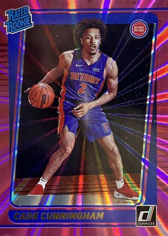 The Cade Cunningham 2021 Donruss #211 Pink Laser Rookie card in Raw condition has moved down -$0.73 (-4.3%) in the last 30 days and was last sold for $16.26 .