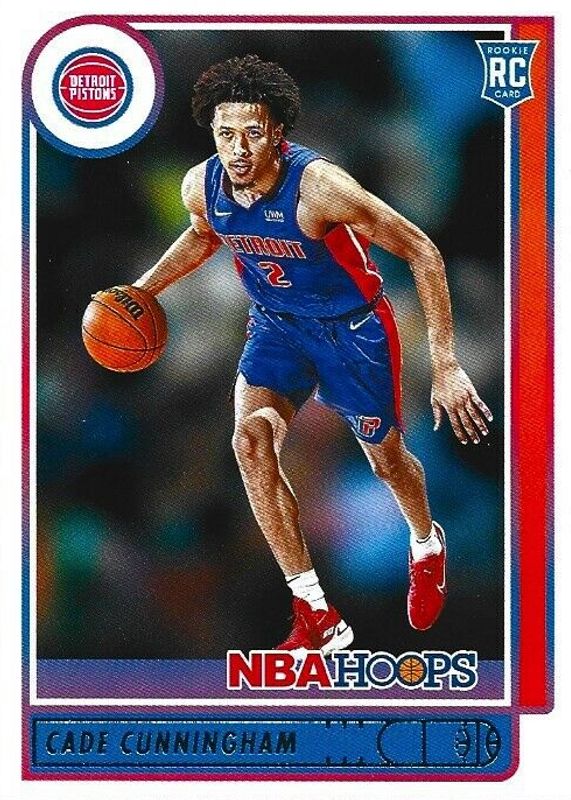 The Cade Cunningham 2021 Hoops #201 Base Rookie card in Raw condition has moved up $0.35 (+35.7%) in the last 30 days and was last sold for $1.34 .