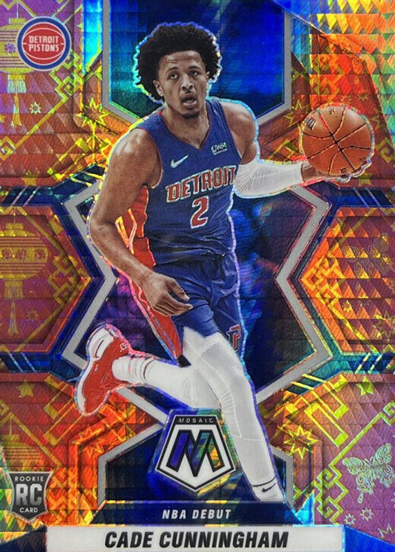 The Cade Cunningham 2021 Mosaic #261 NBA Debut - Lucky Envelopes /8 Rookie card in Raw condition has not changed in price in the last 30 days and was last sold for $227.50 .