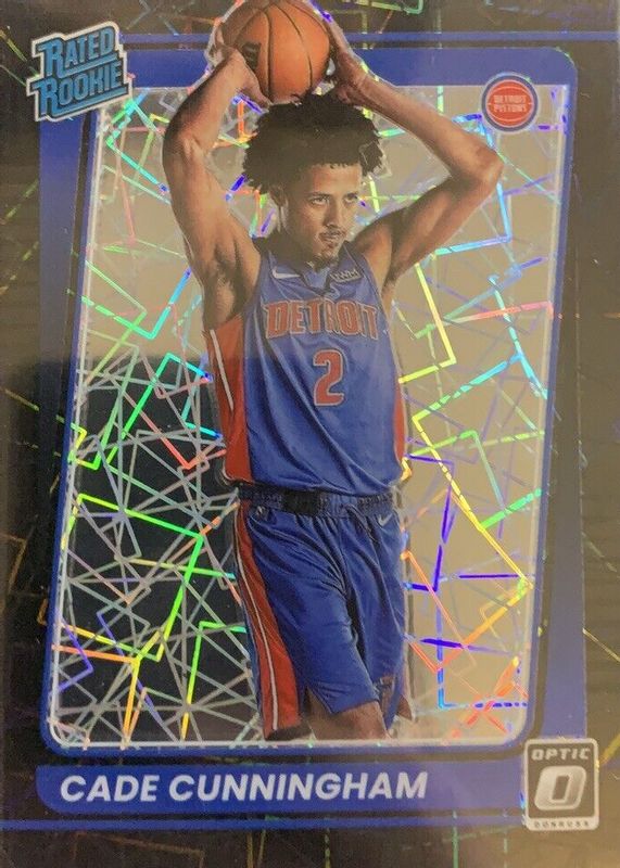 This card is 1 of 44 Cade Cunningham's card variations in the 2021 Optic set being tracked by Sports Card Investor, including Base, Blue Pulsar, Blue Velocity, Checkerboard, and Choice Red & Green.