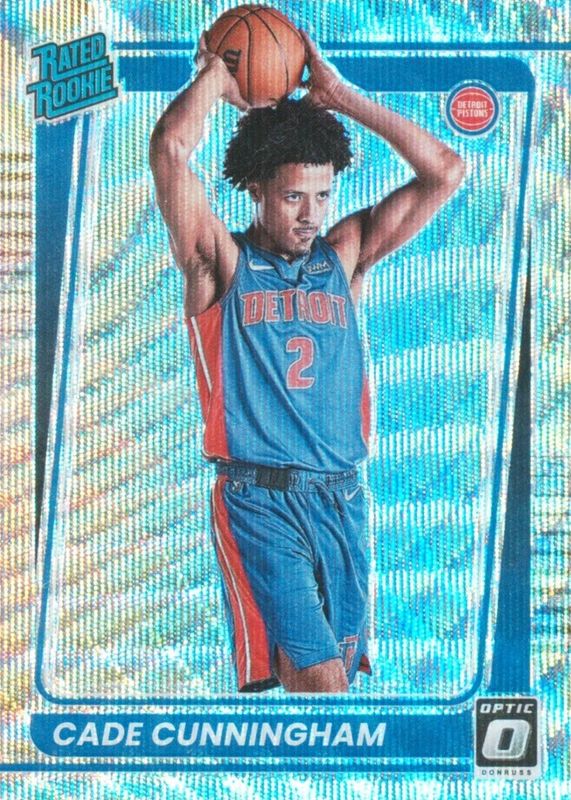 This card is 1 of 106 Cade Cunningham's card variations in the 2021 Optic set being tracked by Sports Card Investor, including Base, Blue Pulsar, Blue Velocity, Checkerboard, and Choice.