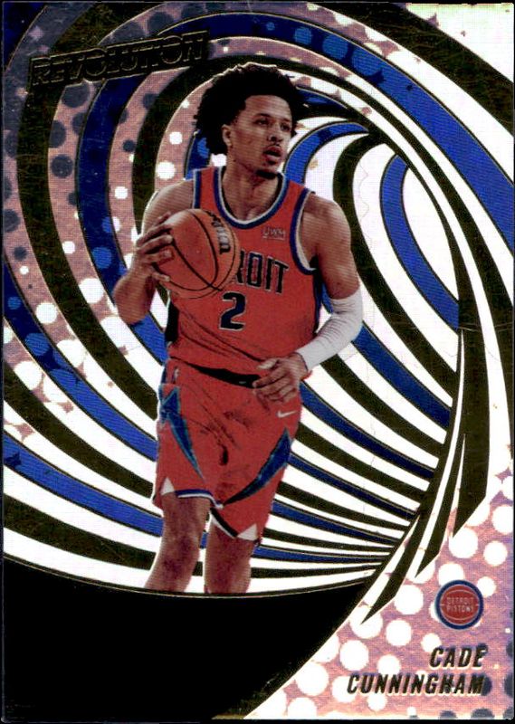 The Cade Cunningham 2021 Revolution #14 Vortex Rookie card is 1 of 49 Cade Cunningham's card variations in the 2021 Revolution set being tracked by Sports Card Investor, including Base, Asia Red, Astro, Chinese New Year, and Fractal.