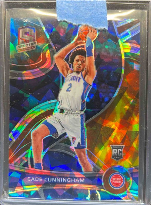 The Cade Cunningham 2021 Spectra #102 Astral /35 Rookie card is 1 of 78 Cade Cunningham's card variations in the 2021 Spectra set being tracked by Sports Card Investor, including #102 Base, #102b Base, #203 Base, #203 75th Anniversary, and #102 75th Anniversary.