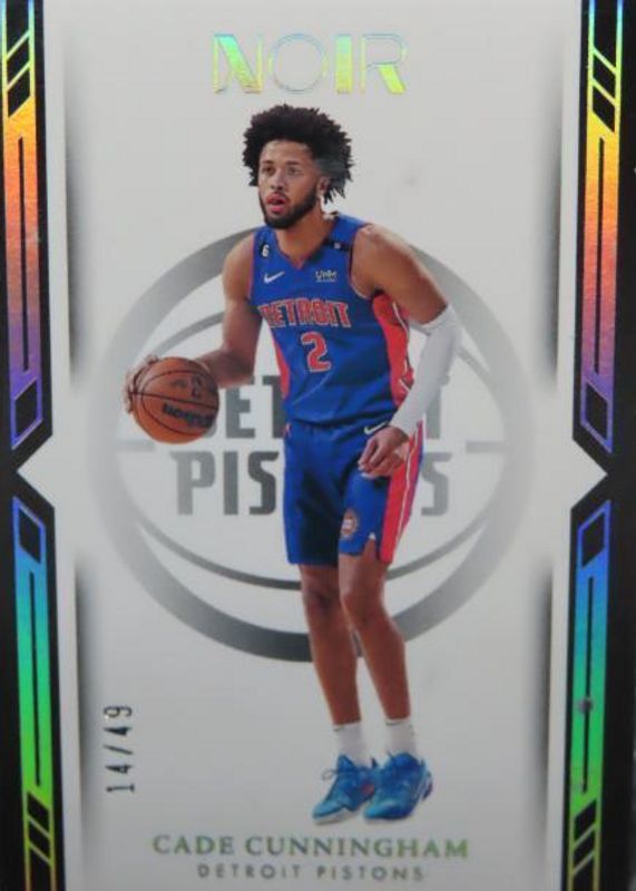 This card is 1 of 13 Cade Cunningham's card variations in the 2022 Noir set being tracked by Sports Card Investor, including Association Edition /99, Icon Edition /99, Statement Edition /25, Association Edition - Holo Silver /49, and Statement Edition - FOTL /11.