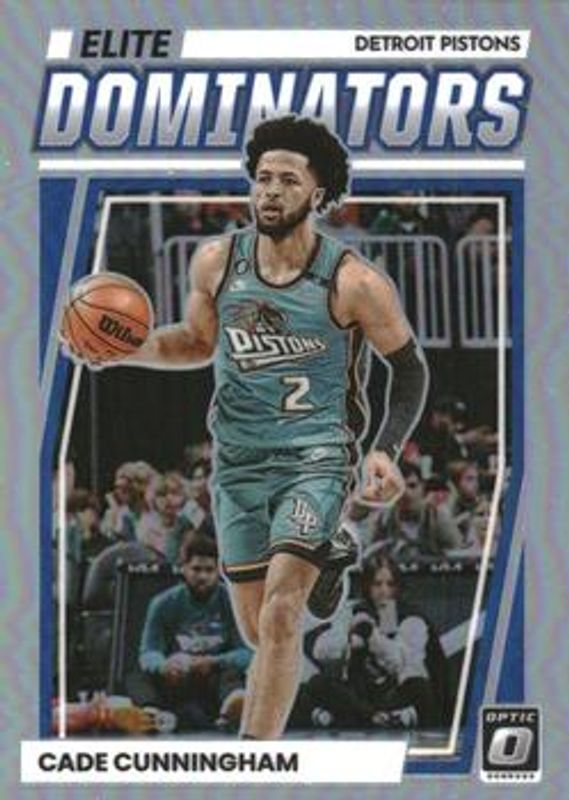 The Cade Cunningham 2022 Optic #20 Elite Dominators - Holo card is 1 of 99 Cade Cunningham's card variations in the 2022 Optic set being tracked by Sports Card Investor, including Base, Checkerboard, Choice Red & Green, Fast Break, and Green Shock.