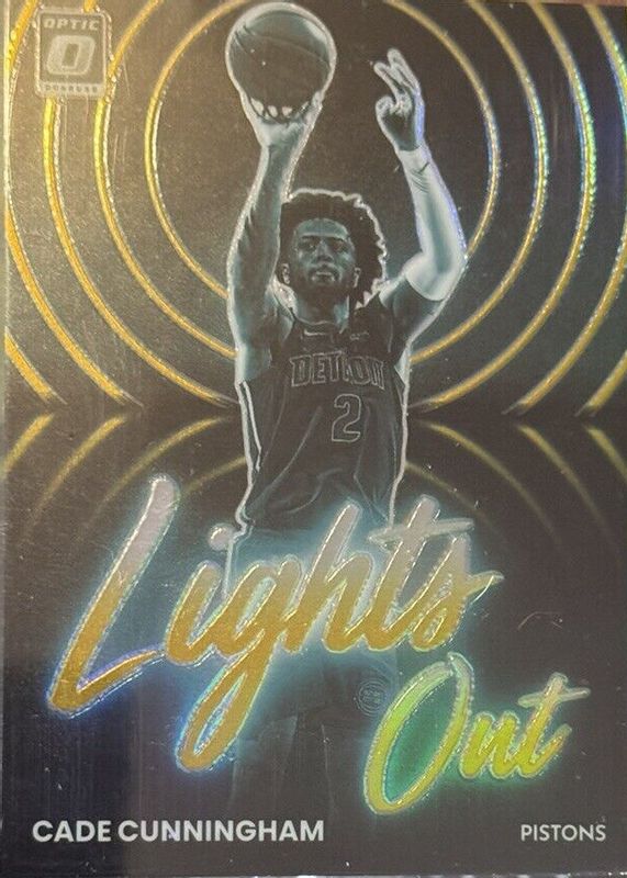 The Cade Cunningham 2022 Optic #11 Lights Out - Gold /10 card in Raw condition has not changed in price in the last 30 days and was last sold for $31.00 .